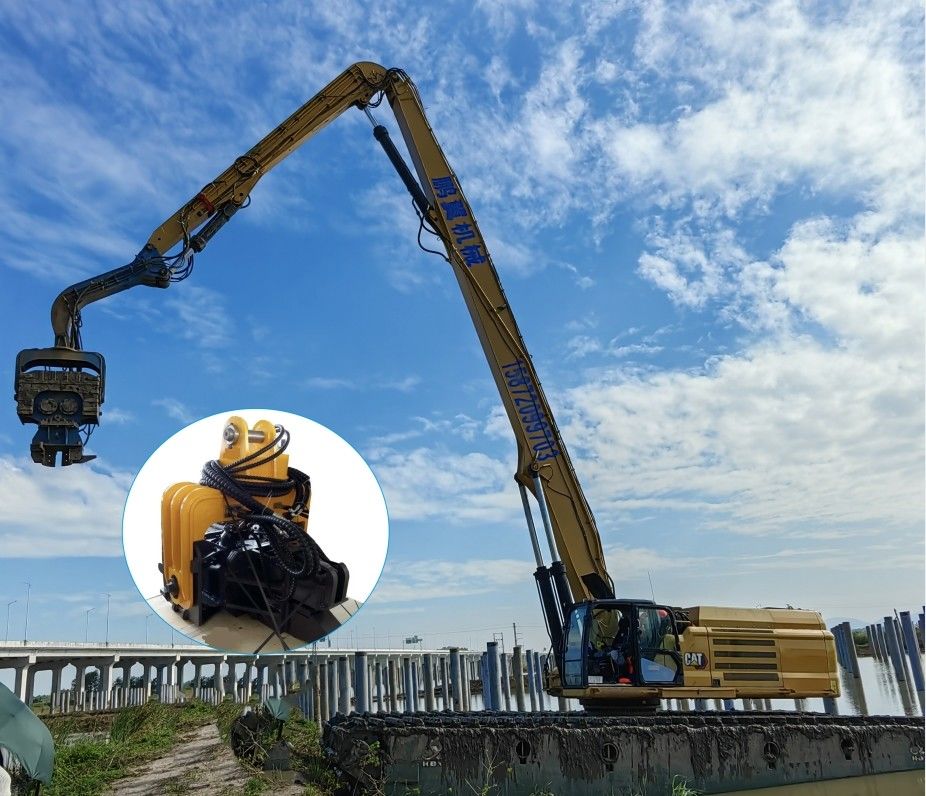उत्खनन मशीन विब्रो हथौड़ा, जिसे कंपन हथौड़ा भी कहा जाता है, उत्खनन मशीनों के लिए डिज़ाइन किया गया एक विशेष संलग्नक है।यह आमतौर पर निर्माण और विध्वंस परियोजनाओं में विभिन्न प्रकार के ढेरों को जमीन में ड्राइव और निकालने के लिए उपयोग किया जाता है.
